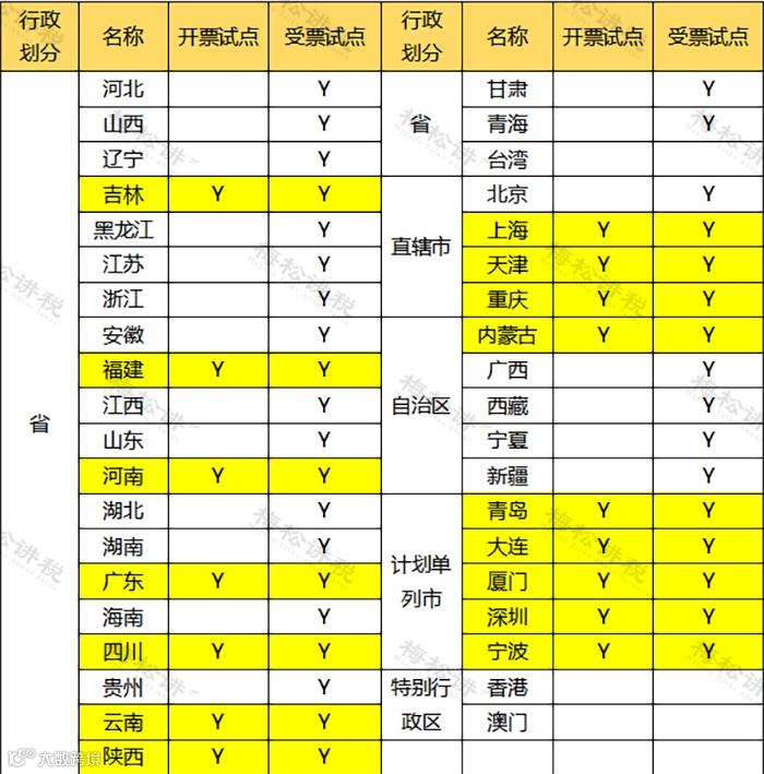 现在,全国已经有16个省市成为数电票的开票试点: