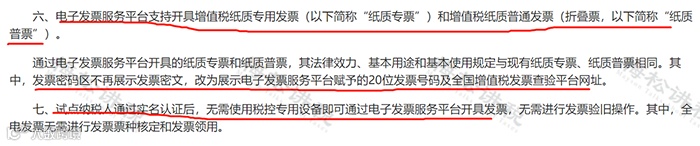 利用电子发票平台开具的纸质版发票,发票密码区不再展示发票密文,改为展示电子发票服务平台赋予的20位发票号码及全国增值税发票查验平台网址。