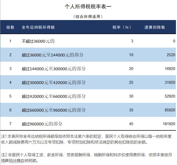 个人所得税税率表