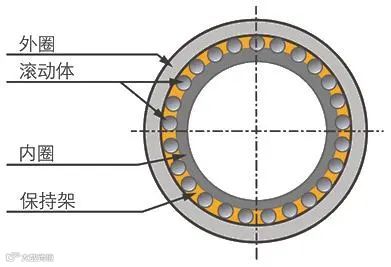 滚动轴承一般由内圈、外圈、滚动体和保持架四部分组成。