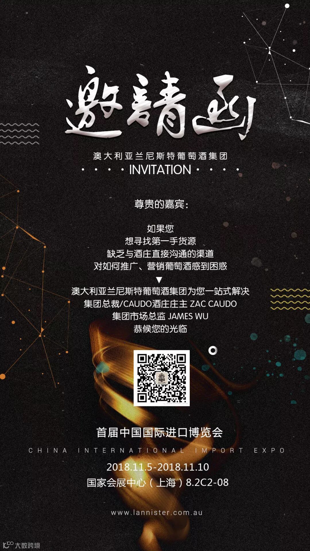 兰尼斯特集团有幸通过澳洲政府和中国政府双方的严格筛选,成为受邀参展的22家澳洲本土企业之一,以南澳州酒庄代表身份,在此世界聚焦的舞台中,同众多世界500强明星企业同台共展,既是两国政府对我们的认可,也是我们企业实力的彰显。