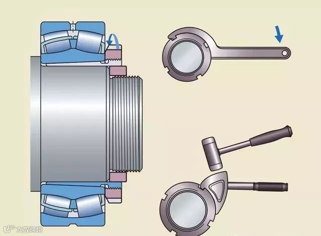 对于中小型的轴承,可以利用锁紧螺母、钩形扳手或冲击扳手来进行拆卸(图10)。