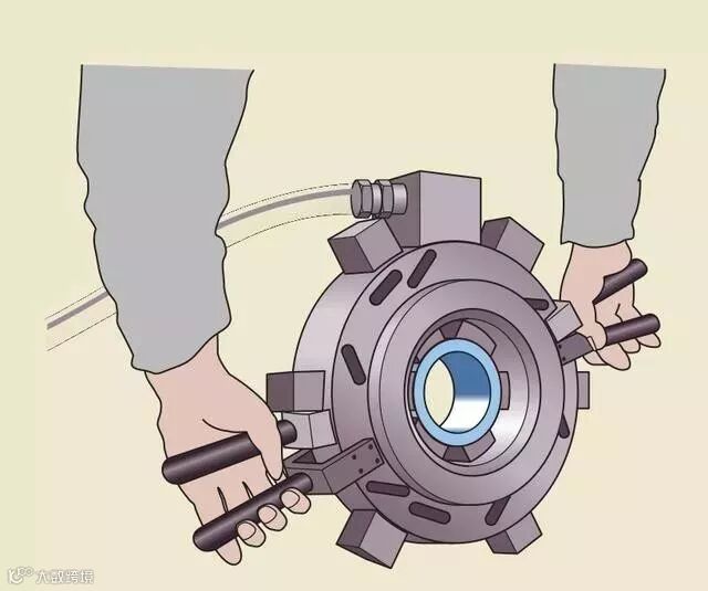 当轴承较大或者过盈量大时,也可采用柔性线圈感应加热法。通过加热箱体外径进行拆卸。箱体的外表面需规则平整,防止局部过热。箱体的中心线要垂直于地面,必要时用千斤顶辅助。