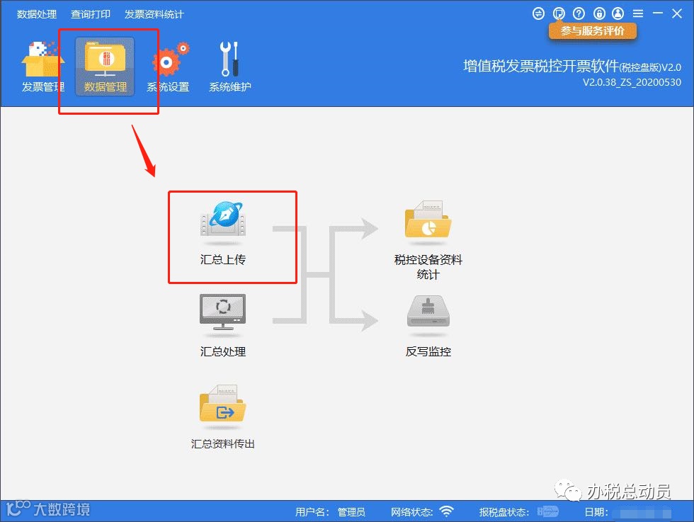 点击:【数据管理】-【汇总上传】-【反写监控】。