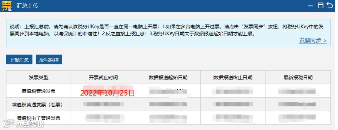 反写成功后,开票截止时间、数据报送起始日期/终止日期跳至下月。