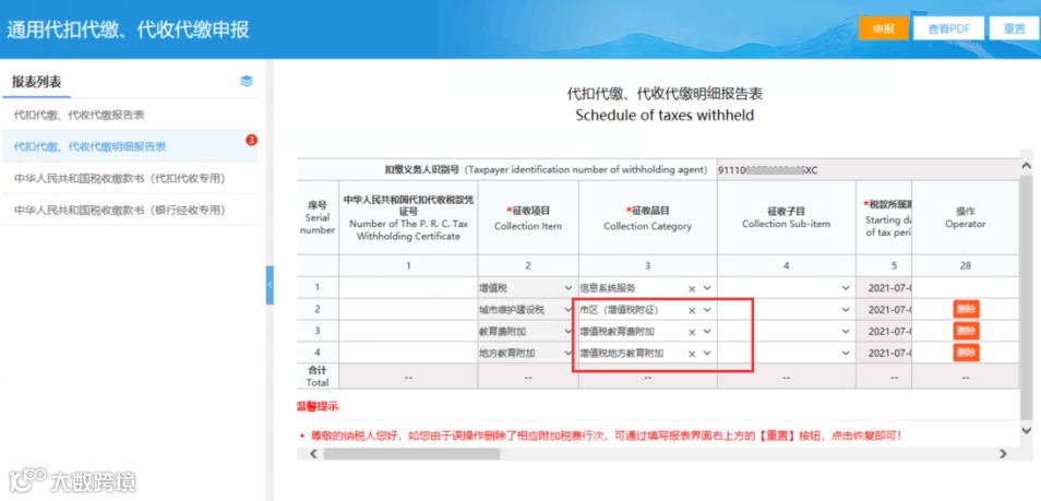6.在电子税务局中进行增值税代扣代缴申报,其中《代扣代缴、代收代缴明细报告表》第17列对应“适用税率或单位税额”栏次标黄,且无法带出数据,应如何处理?