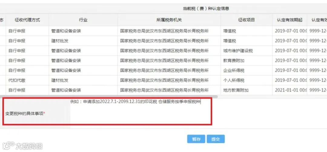 在下方“变更税种的具体事项”中填写需要增加的按季或按年申报的印花税税种信息并提交。等待后台工作人员审核添加完毕就可以啦。