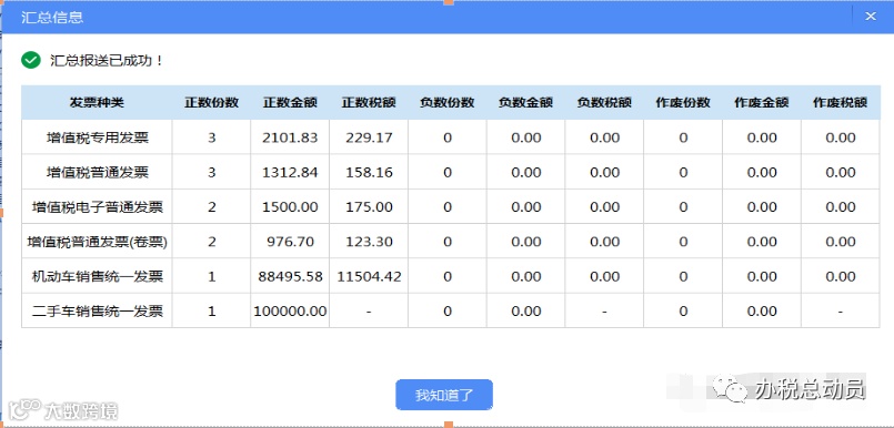 如果系统提示“汇总报送已成功!”点击“确认”,说明抄税成功,如下图所示: