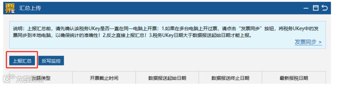操作流程:点击【数据管理】-【汇总上传】-【反写监控】