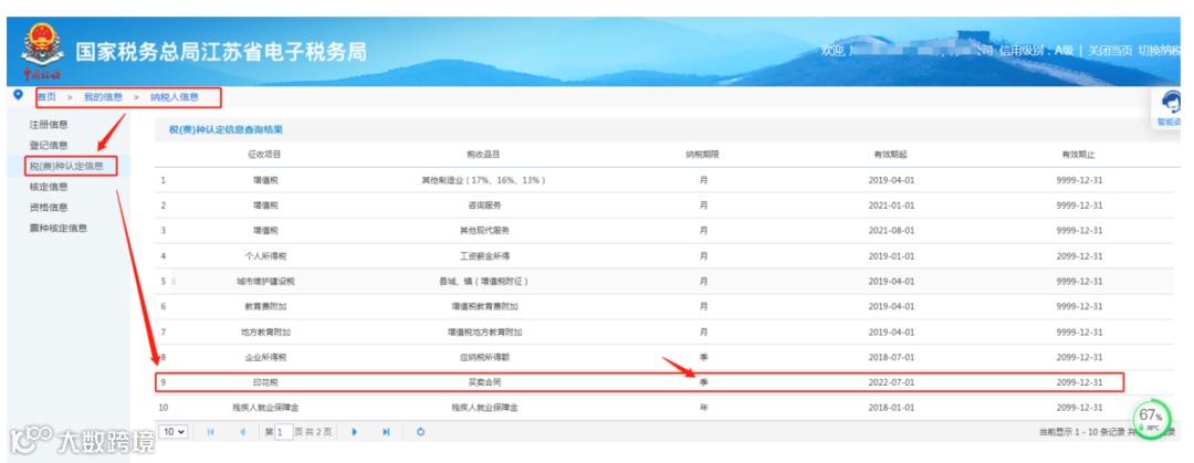 大家可以登录进电子税务局自行查看税费种认定信息,路径为我的信息-纳税人信息-税费种认定信息查询。