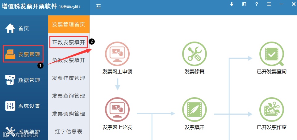销方企业重新开具电子专票,使用开票软件点击“发票管理/正数发票填开”,选择需要开具的发票类型,进入发票填开界面,给购方企业重新开具信息正确的电子专票。