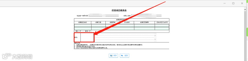七、经营项目调查表页面,申请添加“代扣代缴企业所得税”,在“备注栏”注明需添加的具体税种及有效期。