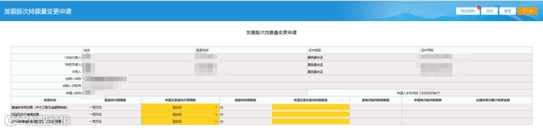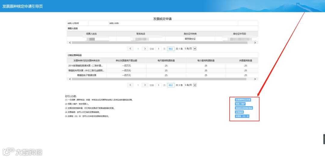 二、发票核定申请页面。进行发票票种核定申请、领票人维护、增值税发票增版变量套餐办理。