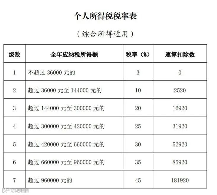 图1:个人所得税税率表(综合所得适用)。图片来源:国家税务总局