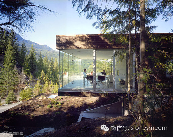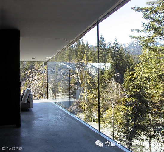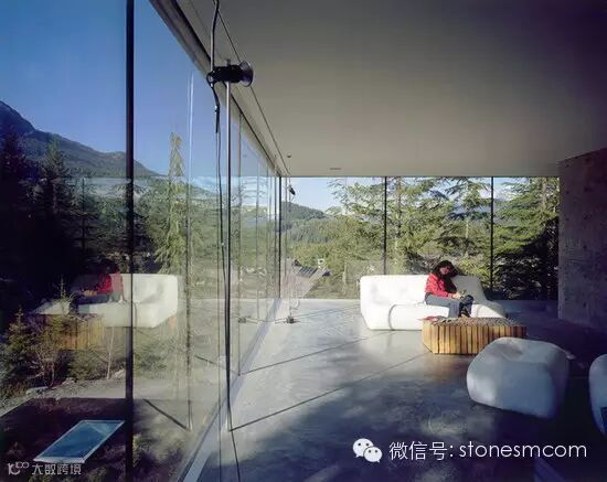 休息区以玻璃幕墙围合,被群山环绕,景色十分优美