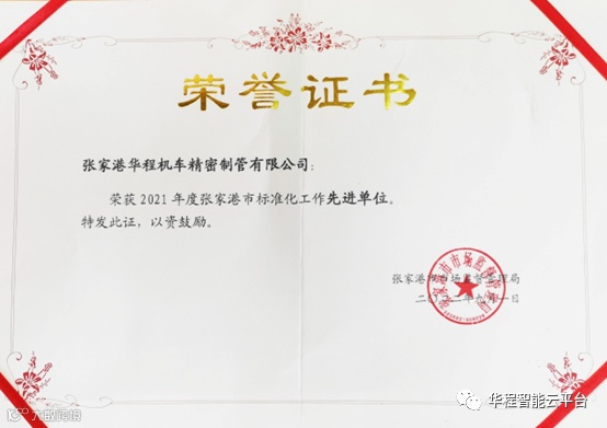 张家港华程机车精密制管有限公司应邀参加本次会议,并被授予“张家港市标准化工作先进单位”。