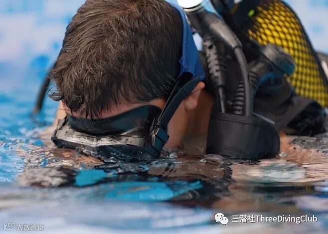 呼气应该是有一定爆发力,能持续不断一定时间。如果一次呼吸没有排干净面镜的积水,请放松别紧张。在重复这个过程之前做几次呼吸。继续做下去,直到你把面镜里的水都排光。
