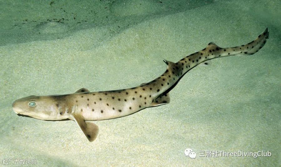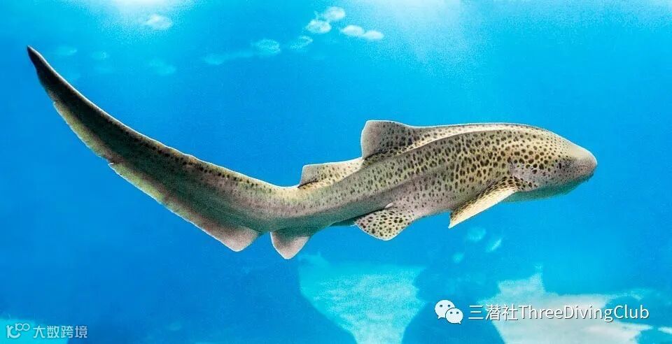 豹纹鲨(Stegostoma fasciatum)又叫大尾虎鲨,长3米以上,大家看到一定要珍惜,它已经是濒危物种了。