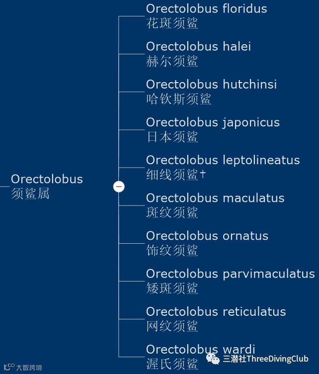 余下须鲨属长度都在1米以上,不同花纹来区别不同物种。