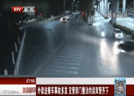 再看看下面这位送餐小哥,也同样在路口遭遇了不测。