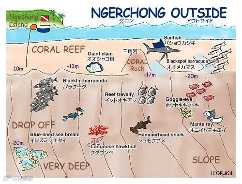 连接Ngerchong水道,外延是直下的峭壁,内延连接珊瑚礁,9-11月灰礁鲨在这里繁殖,终年可以看到章鱼在此孵化,其他如虾、海兔也栖息此处