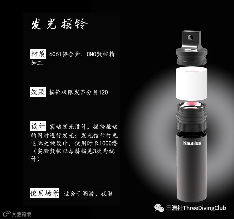 再来就是水下发光摇铃,是成都的一家潜水公司出品的,先给大家看看效果。