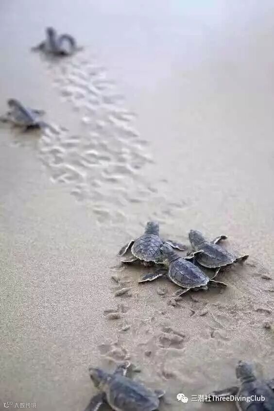 我们在海岛和近海潜水时看到的海龟,都是已成熟的大海龟,由于龟宝宝太小无法安装跟踪器,人类对它们成年前的漫长岁月知之甚少。熟悉海龟的人们常开玩笑说,小海龟身上自带GPS。