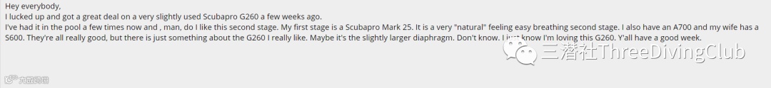 G260本身的呼吸体验并不比S系列差,搭配MK25evo后可以很容易的改成一套侧挂调节器,是非常经济的一个调节器组合套装。
