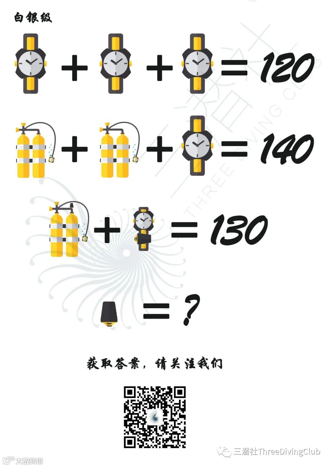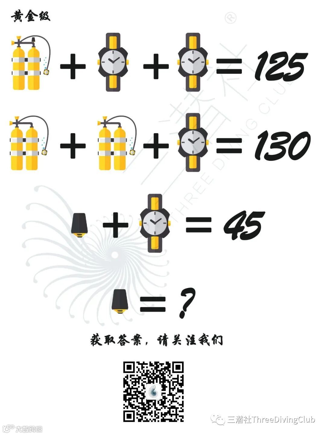 这个有丢丢变态,不过高难度自然高回报,对答对者我们送太平湖每人一日三潜套餐(仅潜水,有效期一年,含气瓶、调节器、BCD租赁,贴身装备如湿衣、面镜等请自备食),名额五名。
