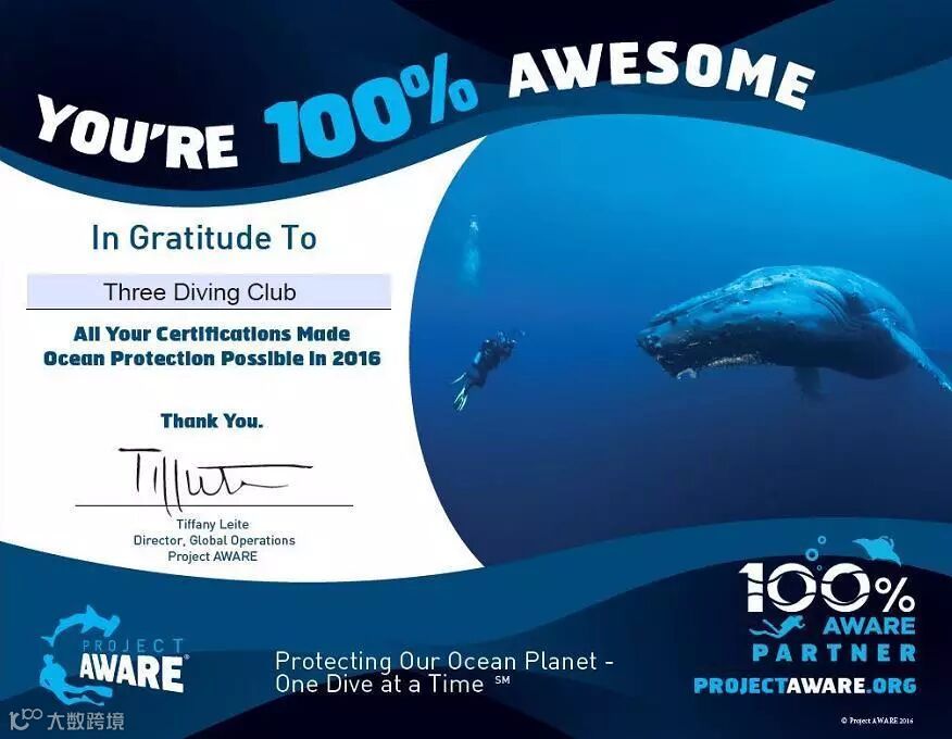 三潜社是Padi旗下100%ProjectAware五星俱乐部,我们会定期举办相关鲨鱼保育课程的公益课程,课程费用免费。如需要申请系统认证牌照,收取另外认证费用。
