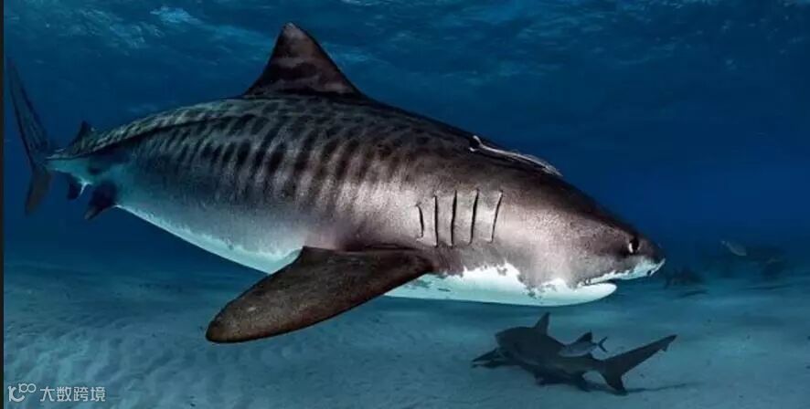 这种虎鲨在2012年之前一直没有出现在COCO岛区域。虎鲨,之所以称之为虎鲨,因为其幼年时皮肤纹路和老虎斑纹近似。虎鲨可以长到10到14英尺(将近4.5米左右),体重可以长到850-1400磅(将近635公斤左右)。