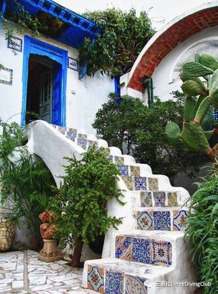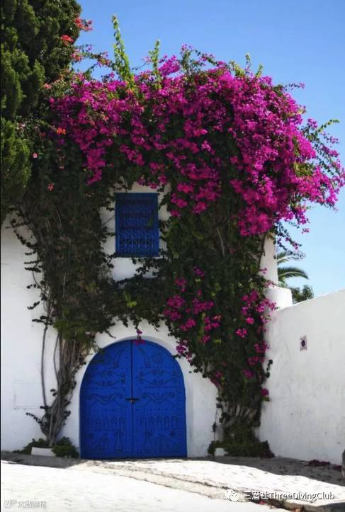 蓝白小镇(Sidi Bou Said),全名西迪布萨义德,位于突尼斯首都突尼斯城东北部,之所以称它为「蓝白小镇」,是因为这个坐落在地中海边峭壁上的镇子,所有的房屋只有两种颜色,白色的墙,蓝色的门窗。