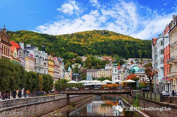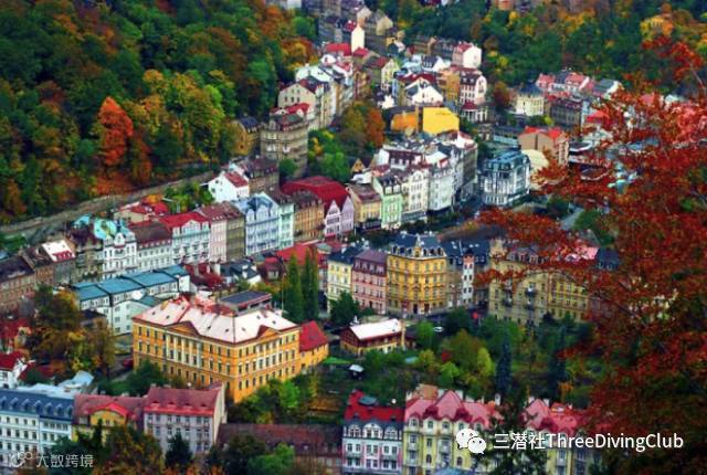 卡罗维发利(Karlovy Vary)又称温泉小镇,简称KV小镇。始建于十四世纪,地处捷克最西部,藏在山谷中。有可饮用的温泉水,被誉为「汽水温泉」。清新的空气、凉爽的气候使其成为一处理想的度假胜地。