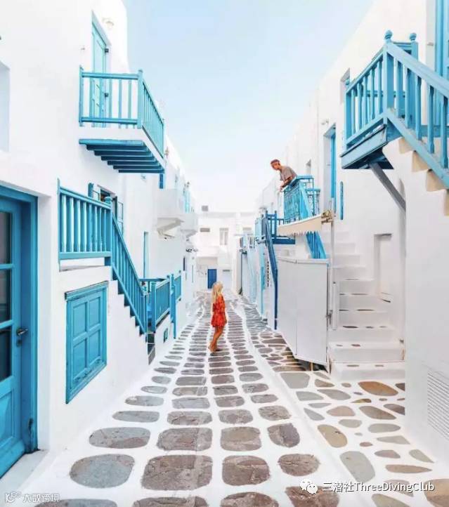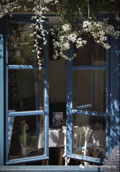 整个小镇是沿山势蜿蜒而上的,布局很简单,一条鹅卵石铺就的街道,两边是在阳光下闪闪发亮的白色房屋,也有些小巷从屋子内伸出去。房屋都只有二三层高,最让人感觉仿佛置身于童话的,是个艺术家与作家聚集的地方。