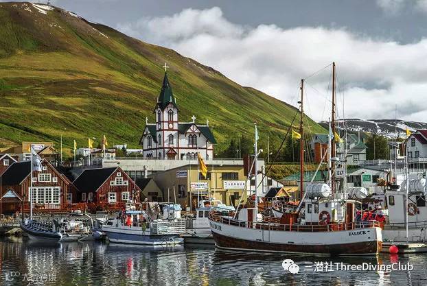 胡萨维克(Húsavík)位于冰岛东北部的斯乔尔万迪湾旁,由于附近的海区是欧洲最好的观鲸场所之一,因而它被称为「欧洲观鲸之都」。每年的夏季适逢观鲸旺季,大量游客汇集于此,期盼和巨大的鲸鱼来个亲密接触。