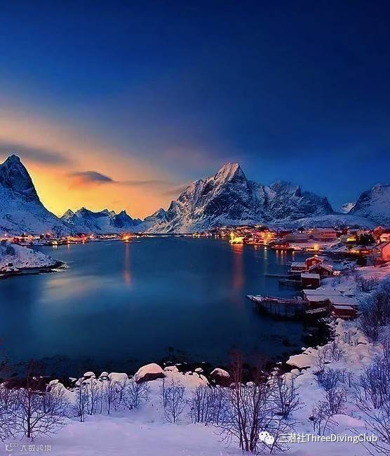 青蓝色的港湾坐落在峡湾和高山间,充满了北欧野外的美感。红色的渔夫小屋如今成了游客的住房,房屋触摸着挪威海,晚上还可以看到美丽的星空、夏季午夜阳光和冬季北极光,浪漫不过如此!