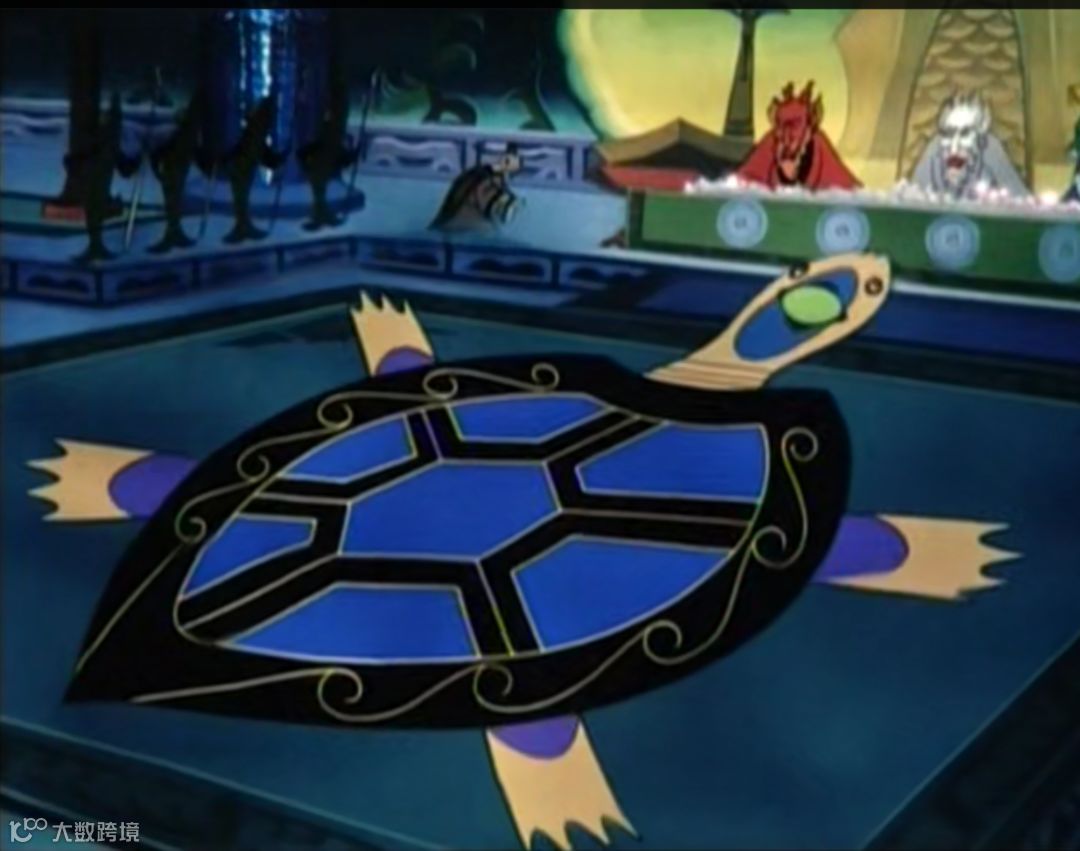 ~~这种头上有宝石的海龟真心没有,七块背甲的海龟也不存在,于是找了Dermochelys coriacea 棱皮龟,他背后也是七片鳞甲。