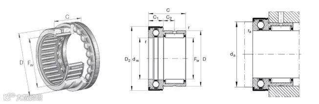 2. 无内圈滚针和带外罩的推力球组合轴承