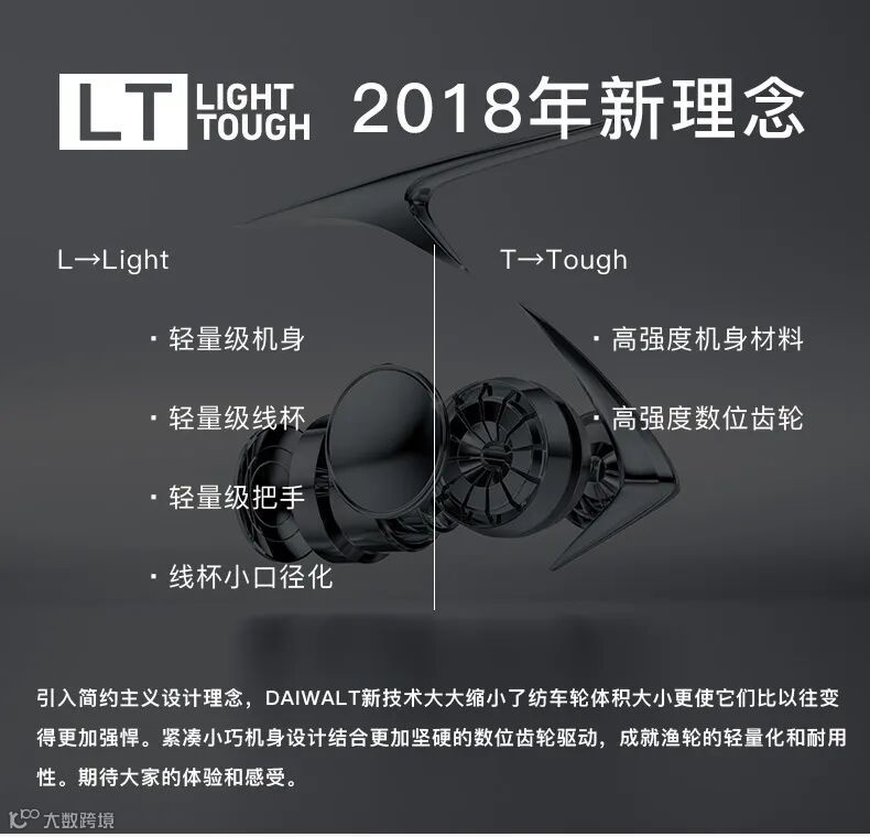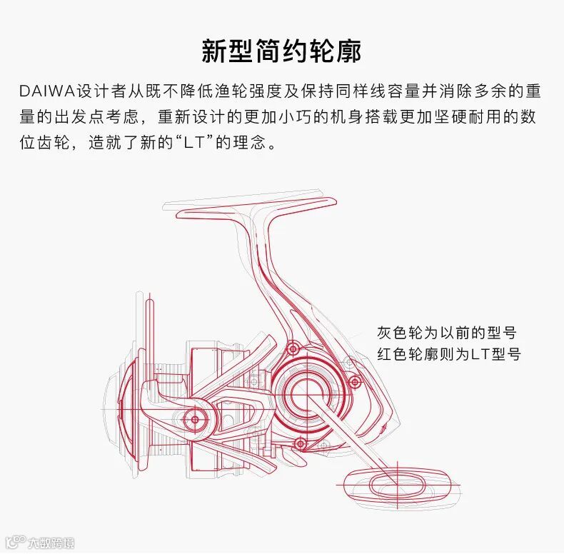 拘泥于从机身,线杯,手把等到细节部分进行轻量化从渔轮的心脏部的齿轮,然后到包住齿轮的机身的素材进行坚韧性的进化从而诞生的Daiwa小型纺车轮的新基准这就是LT.