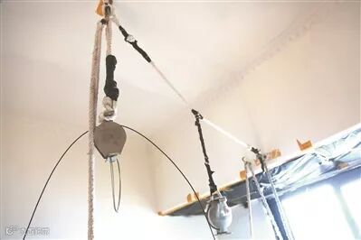 办案人员介绍,卧室的窗户栏杆已被拆除,从窗户到门框安装了滑轮轨道,“飞线”绞盘放置于窗边。记者在屋内发现了不少线材,有很细的渔线,还有稍粗的黑皮线。