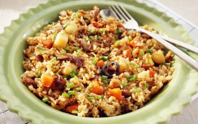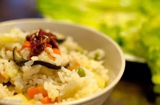 看着看着,感觉米饭上面发出blingbling的金光了。犯懒吃货的世界里,简单的食物最美。只需要把所有的食材都丢进电饭煲去,等着吃就好。