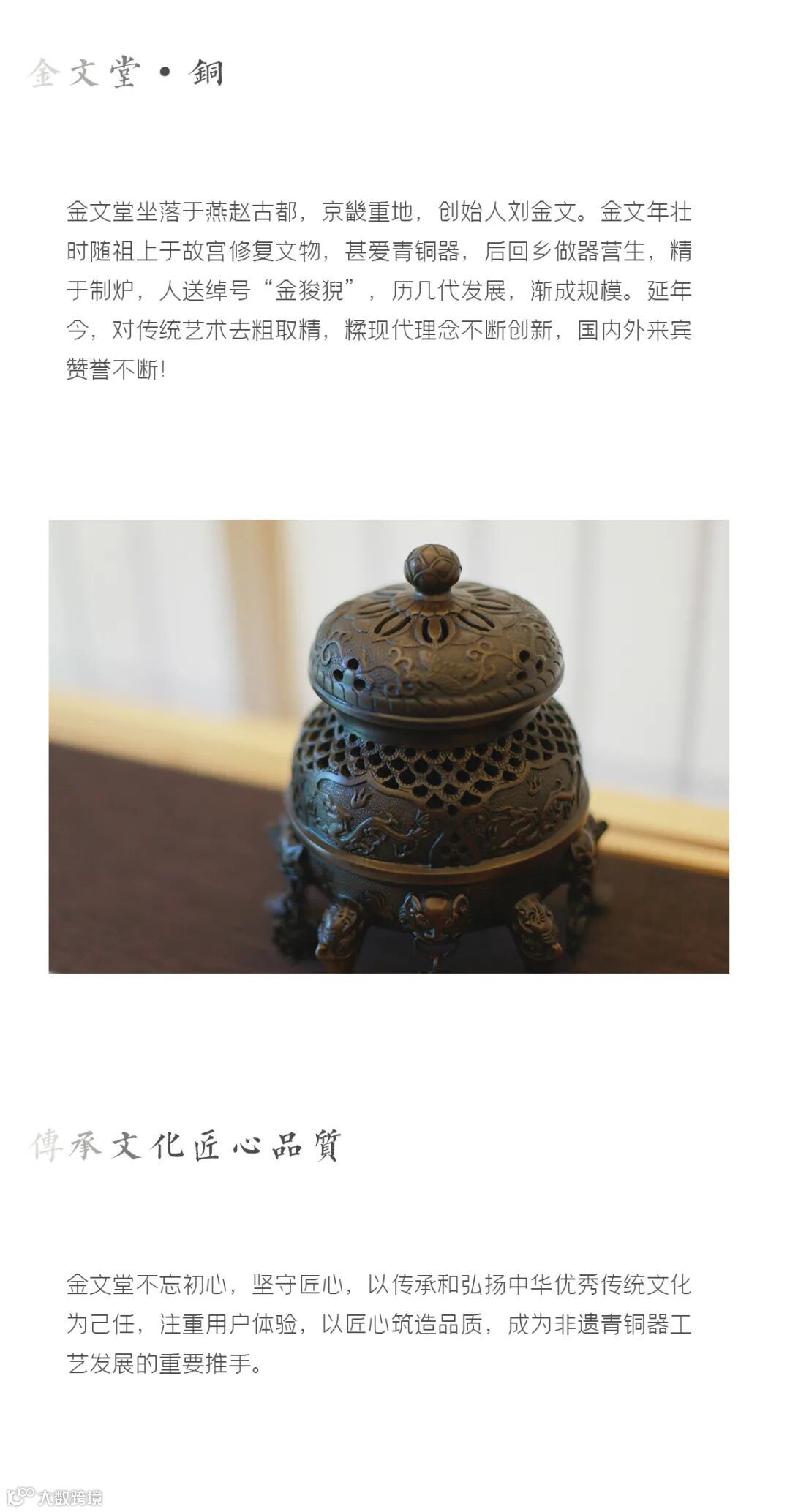 錾刻工艺的操作,是在设计好器形和图案后,按照一定的工艺流程,以特制的工具和特定的技法,在金属板上加工出千变万化的浮雕状图案。