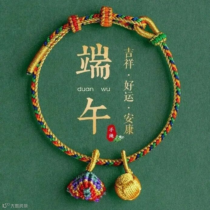 ”民间把五彩绳看成“五彩龙”,端午节拴五彩绳有保护儿童驱妖避邪之意。随水冲走的五色绳就会变成小龙,带走你身上的不好的东西