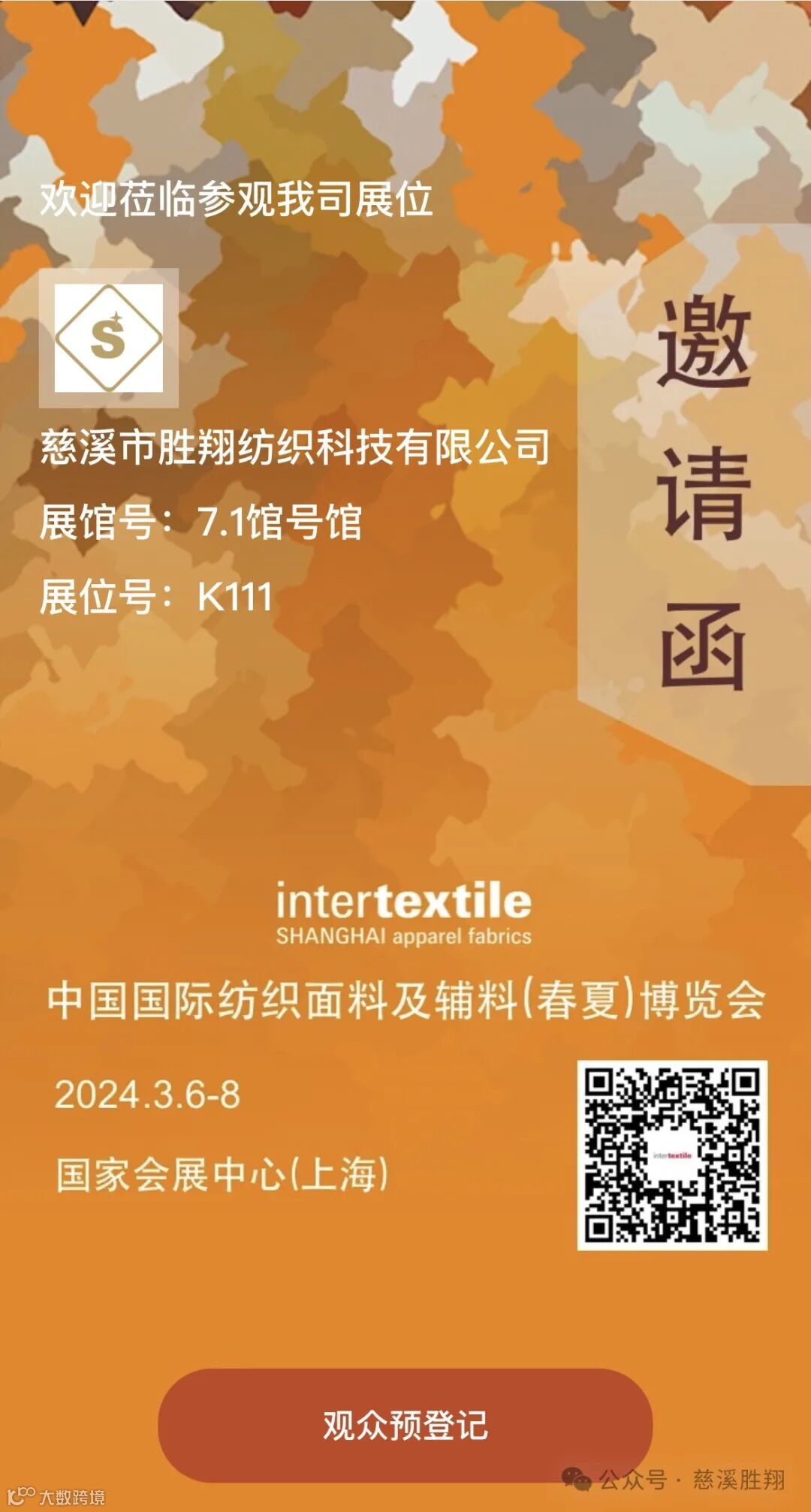 邀请函·2024中国国际纺织面料及辅料博览会(春夏)