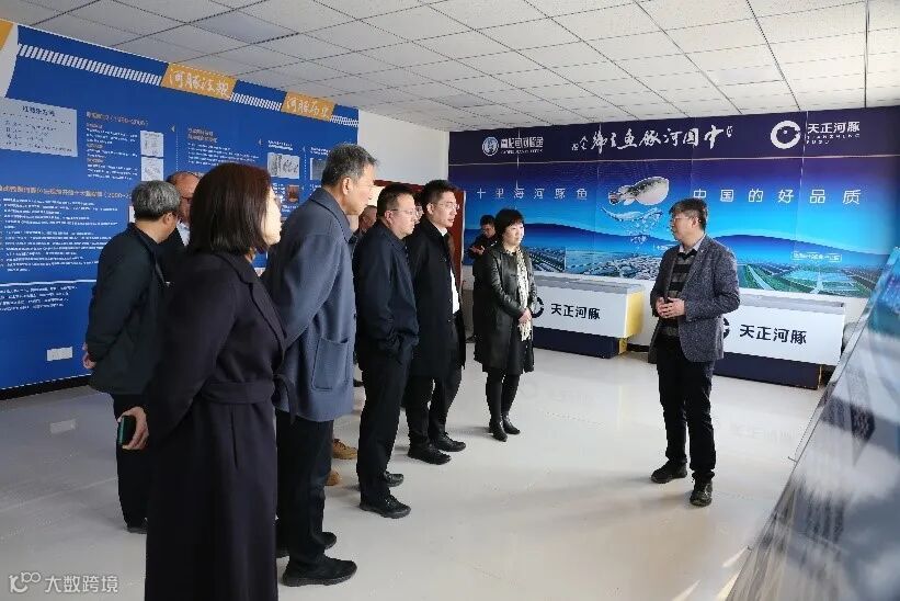 首先,曾昊处长等相关领导在牧海河豚文化展厅,听取了集团刘圣聪副总经理对牧海公司开展水产种业及实施红鳍东方鲀育繁推一体化项目的汇报,并了解了天正在红鳍东方鲀群体选育、家系选育、全雄育种等生物育种科研工作的进展情况。