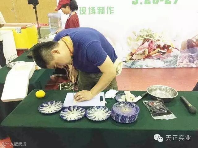 多年来,天正集团以“天正河鲀”驰名中外,其所养殖的红鳍东方鲀深受国内外客户欢迎,持续热销日、韩等国。在国内河豚鱼市场即将有条件开放之际,天正河鲀受到与会各方的高度关注,来天正展位参观、洽谈的人络绎不绝。天正集团为了让与会人员一尝河豚美味,更在现场制作了有“世界五大名菜之一”美誉的河豚鱼生鱼片供大家品鉴。大家纷纷对天正河鲀美味赞不绝口,的确称得上“鱼中之王”。展会期间,更有产业链上、下游合作商慕名而来,寻求合作。