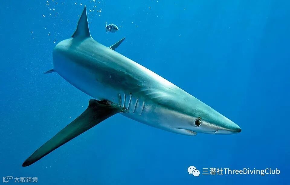 大青鲨属下唯一大青鲨,又叫蓝鲨,Prionace glauca,身体较长,小窄脸,大眼睛,鳍的末端颜色很深。蓝鲨分布非常广泛,喜好长途旅行,从新英格兰到南美都能发现它的影子。