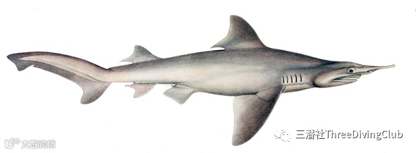 弯齿鲨属弯齿鲨,Loxodon macrorhinus,最大才长到95cm,眼眶后有缺口,吻相对身体比例显得非常长。主要分布于印度洋及西太平洋地区。