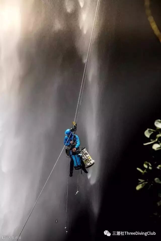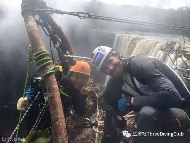 瀑布顶部降到底部花了一个小时。最大的挑战在于,这样的落差、瀑布的激流,及其充沛的水量在这样大的垂直落差下,拍打力量是不容小觑的。在绳降过程中,巨大的水流冲击力,加上瀑布激起的水雾下很难预估崖底的状况,那种惊险的感觉太难形容了!