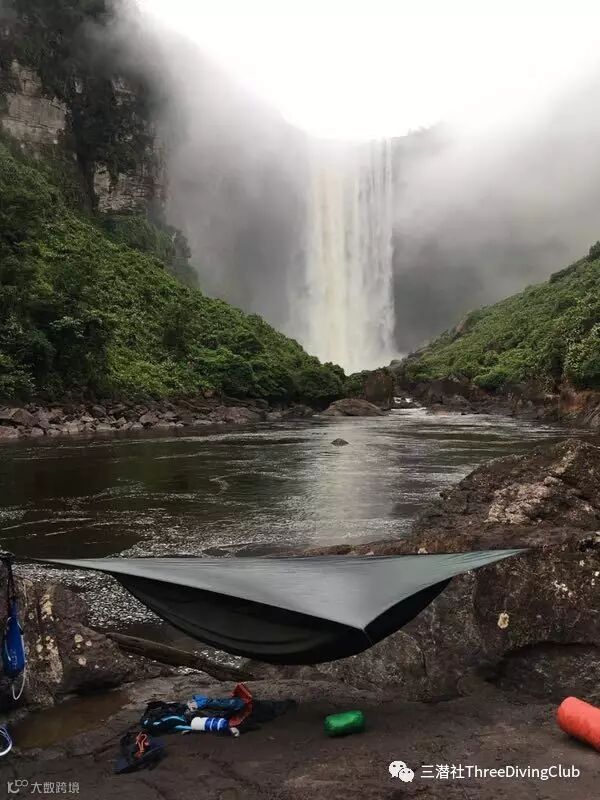 第四天到达凯厄图尔(Kaieteur)瀑布,绳索团队已经在这里建了四天的下降系统。这是从来没有人挑战过的绳降地点,从一年前开始定制瀑布绳降专用绳索,到如今搭建下降系统,每一个环节都不能出错。第五天我们就开始瀑布绳降。接着之后几天就继续开始雨林穿越。